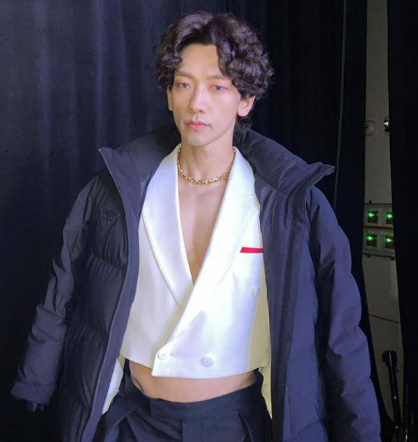비는 13일 자신의 인스타그램에 불 이모티콘과 함께 한 장의 사진을 게재했다. 공개된 사진에는 무대에 올라가기 전 대기하고 있는 비의 모습이 담겼다.