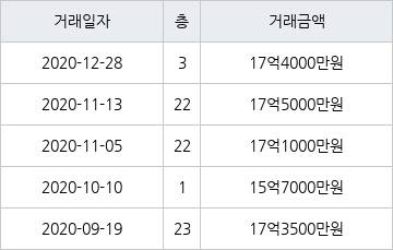 [이 기사는 조선비즈와 아티웰스가 공동으로 개발해 서비스하는 로봇 기사입니다.]국토교통부 실거래가 공개시스템에 따르면 지난 2020년 12월 28일 서울특별시 용산구 이촌동 한강대우 3층 전용면적 84㎡형이 17억4000만원에 거래됐다.
