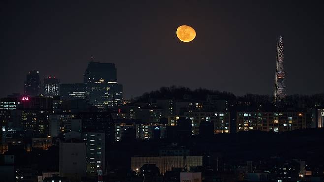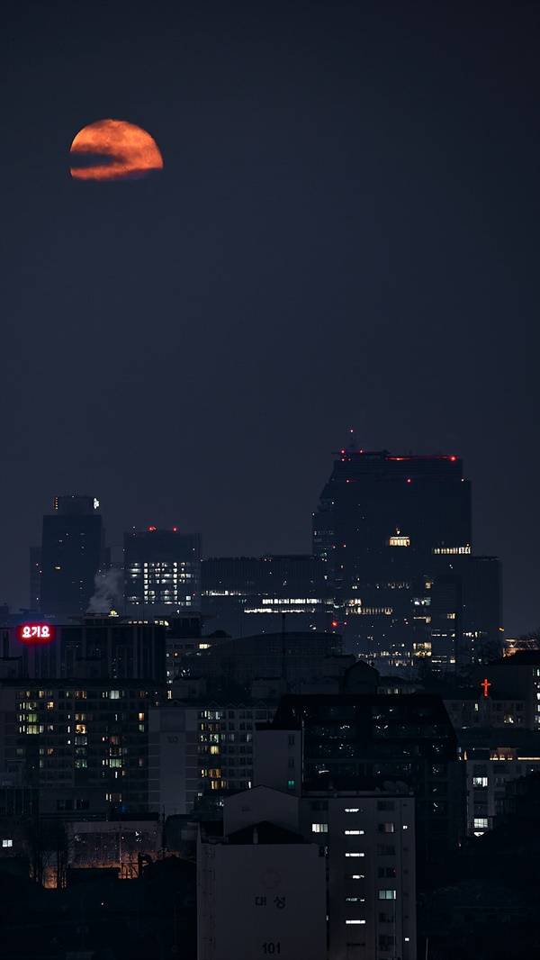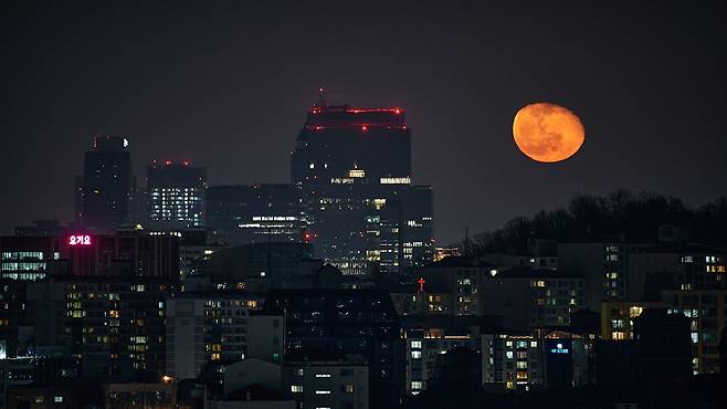 | ▲ 미소지으며 건물을 내려다보는 듯한 달님의 모습. 강남구의 모습이 달과 함께 이리도 멋지게 어우러진 풍경은 처음이다. |
