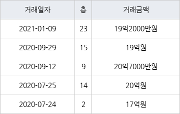 지난 2021년 1월 9일 같은 면적형인 23층 물건이 19억2000만원에 실거래된 것과 비교해 같은 가격이다.