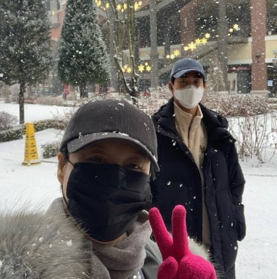 박미선은 12일 인스타그램에 "눈 오는 날 아들과 데이트"라는 글과 함께 사진을 올렸다.
