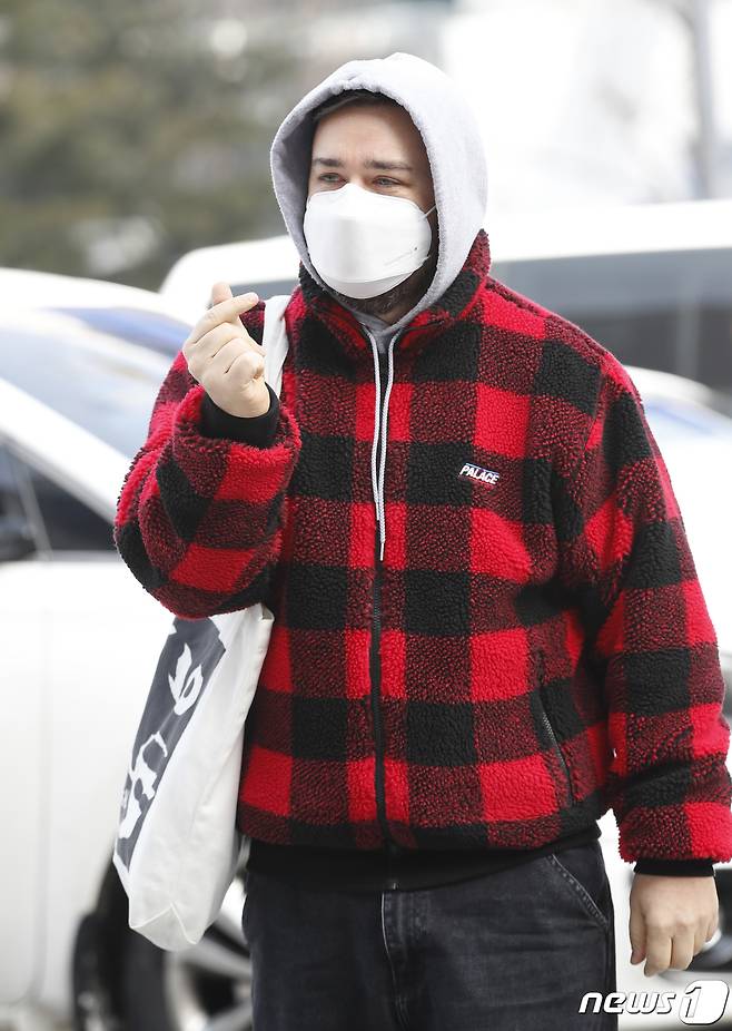 (서울=뉴스1) 권현진 기자 = 방송인 샘 해밍턴이 13일 서울 영등포구 여의도 KBS에서 열리는 KBS 2TV '트롯 전국체전' 촬영 차 방송국으로 들어서며 인사를 하고 있다. 2021.1.13/뉴스1