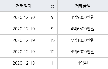 국토교통부 실거래가 공개시스템에 따르면 지난 2020년 12월 30일 경기도 수원시 팔달구 화서동 화서 블루밍푸른숲아파트 9층 전용면적 59㎡형이 4억9000만원에 거래됐다. 지난 2020년 12월 30일 같은 면적형인 9층 물건이 4억9000만원에 실거래된 것과 비교해 같은 가격이다.