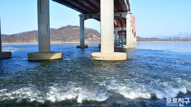 방화대교는 하수처리장에서 따듯한 물이 유입되는 곳이라