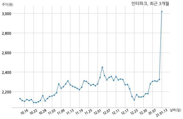 한편, 인터파크는 장 마감 이후 해당 기업공시를 발표했으며 오늘 종가가 3,020원, 거래량은 55,000,826주로, 직전 거래일 대비 695원(+29.89%) 상승했다.