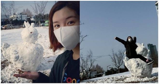 오뚜기 함영준 회장의 장녀이자 뮤지컬 배우 함연지(28·사진)가 초대형 눈사람을 만들었다.