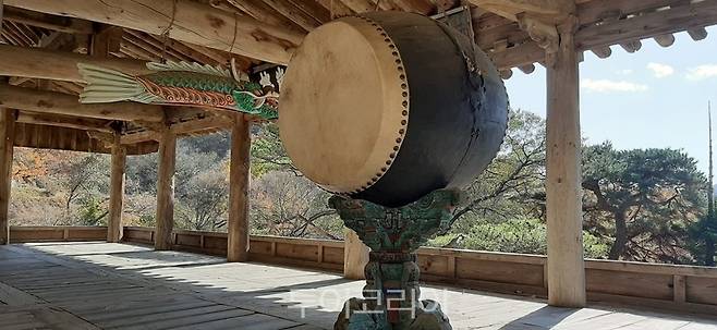 만세루의 누문(樓閣:사방이 탁 트이게 높이 지은 다락집)도 여느 것과 마찬가지로 이층구조인데 아래층은 통로, 위층은 목어, 법고, 운판 등 불교의 사물(四物)이 걸려 있고 전망도 훌륭하다.