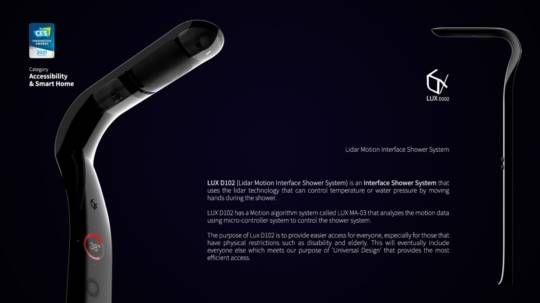 이번 혁신상 수상작 LUX D102는 샤워 중 손을 움직여 온도나 수압을 제어할 수 있는 라이더 기술을 사용한 모션 인터페이스 샤워 시스템이다.