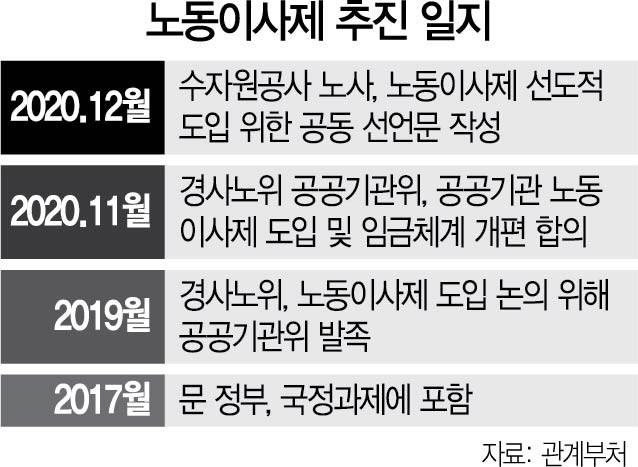 노동이사제가 국정 과제에도 올라 있는 만큼 정부에 코드를 맞춰야 하는 공공 기관들을 중심으로 도입이 우선 검토될 것으로 전망된다.