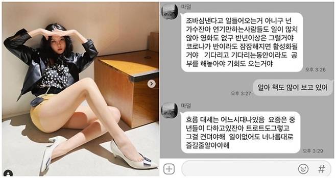 효민은 13일 인스타그램에 엄마와 나눈 메신저 내용을 공개했다.