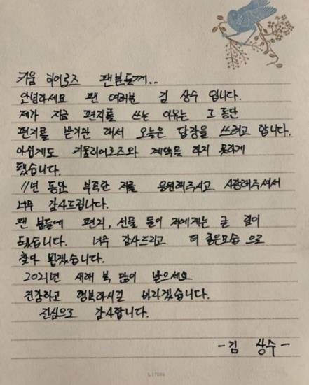 (서울=연합뉴스) 키움 히어로즈에서 SK와이번스로 트레이드된 김상수가 13일 소셜네트워크서비스 계정을 통해 팬들에게 감사 편지를 남겼다.