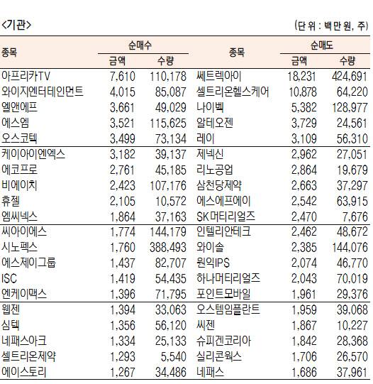 - [표]코스닥 기관·외국인·개인 순매수·도 상위종목(1월 11일-최종치)