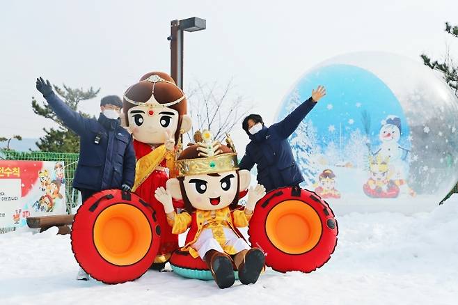 [김해=쿠키뉴스] 강종효 기자 = 경남지역 최대 눈놀이 시설인 김해문화재단 김해가야테마파크 '익사이팅 눈썰매장'이 오는 2월 21일까지 운영된다.