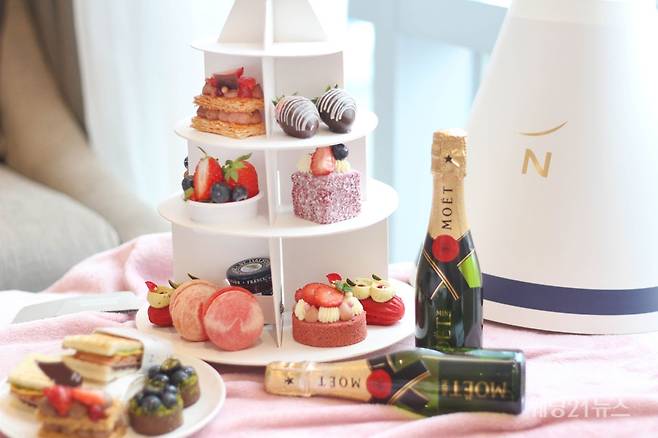 여기에 디저트와 함께 각자 즐길 수 있는 모엣 샹동 미니 사이즈 2병이 함께 제공되어 완벽한 오후의 티타임을 선사할 예정이다.