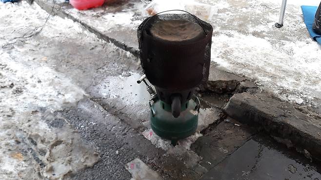 자리를 이동해 얼마를 걸어가니 나물 장수 아주머니네 난로와 얼추 비슷한 게 보인다. 오후 3시를 조금 넘겨서 해(日)도 안 빠진 시간인데, 주인으로 보이는 아저씨는 좌판을 걷고 있다. 꺼진 난로 덕에 확신이 들자,