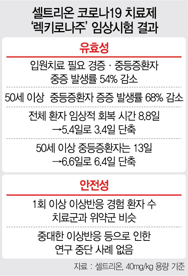 셀트리온 '렉키로나주', 치료기간 3일 줄이고 입원율 54% 낮춰
