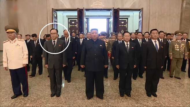 ◎박찬형 저기 지금 금수산 태양궁전 참배한 사진인데, 저 왼쪽 동그라미 부분이 지금 김여정...