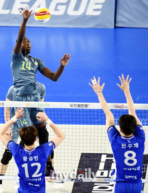 [마이데일리 = 천안 곽경훈 기자] 현대캐피탈 다우디가 13일 오후 충청남도 천안시 천안유관순체육관에서 진행된 '2020-2021 도드람 V-리그' 현대캐피탈-삼성화재의 경기에서 공격을 시도하고 있다.- ⓒ마이데일리(www.mydaily.co.kr). 무단전재&재배포 금지 -