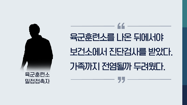 당시 밀접접촉자로 분류돼 귀가한 육군훈련소 입소자 A 씨는 “군 격리는 열악하고, 복무일에도 포함되지 않는다는 귀가 종용에 가까운 말을 듣고 집으로 가는 것을 택할 수밖에 없었다”며 “훈련소에서 나온 뒤에서야 보건소에 가서 가까스로 진단검사를 받을 수 있었다. 가족까지 코로나19에 감염될까봐 두려웠다”고 토로했습니다.
