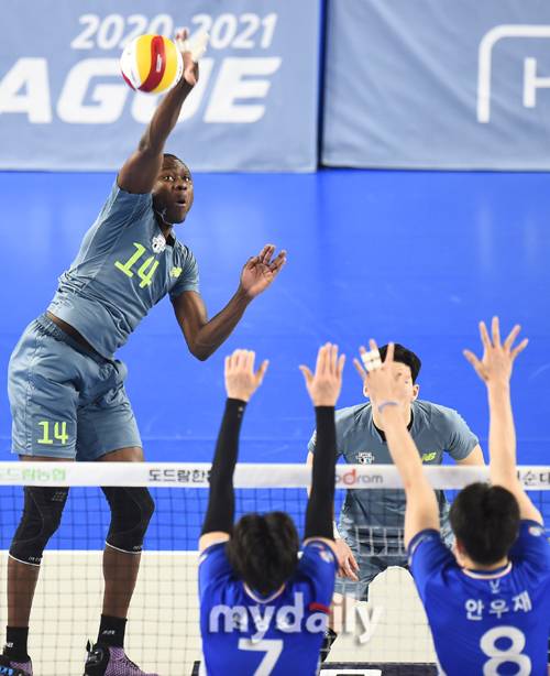 [마이데일리 = 천안 곽경훈 기자] 현대캐피탈 다우디가 13일 오후 충청남도 천안시 천안유관순체육관에서 진행된 '2020-2021 도드람 V-리그' 현대캐피탈-삼성화재의 경기에서 서브를 넣고 있다- ⓒ마이데일리(www.mydaily.co.kr). 무단전재&재배포 금지 -