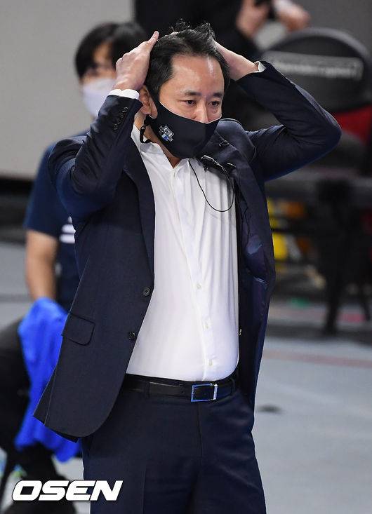 2세트 현대캐피탈 최태웅 감독이 머리카락을 쓸어넘기고 있다. / soul1014@osen.co.co.kr