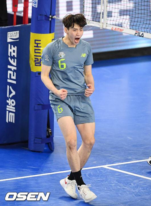 1세트 세트 포인트 성공한 현대캐피탈 김선호가 기뻐하고 있다. / soul1014@osen.co.co.kr