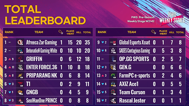 [PWS] 아프리카 자르 게이밍, 밀베 지배하며 에란겔 선두 차지