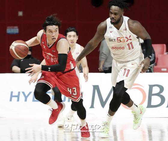 2020~2021 프로농구 고양오리온과 서울SK의 경기가 13일 오후 경기 고양체육관에서 열렸다. 이대성이 워니의 공을 가로채 달려나오고 있다.