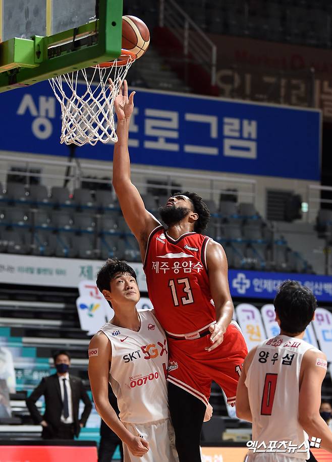 [엑스포츠뉴스 고양, 김한준 기자] 13일 오후 경기도 고양실내체육관에서 열린 '2020~2021 현대모비스 프로농구' 고양 오리온과 서울 SK의 경기, 오리온 로슨이 레이업을 시도하고 있다.