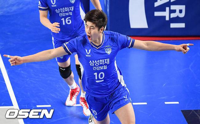 1세트 삼성화재 박상하가 득점 후 환호하고 있다 ./ soul1014@osen.co.co.kr