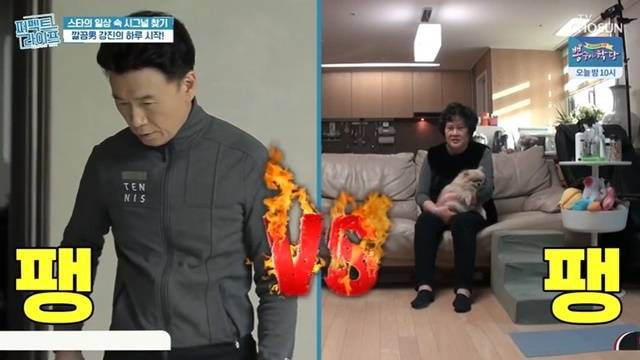 아내 김효선은 “시간이 몇 시인데. 더 자게 두지”라고 말했고, 강진은 “시간이 몇 시인데. 일어나야지”라고 응수했다. 아내는 반려견에게 “너무 시끄럽지? 청소기를 매일 해”라며 한탄했다.
