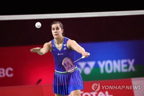 epa08934568 A handout photo made available by the Badminton Association of Thailand of Carolina Marin of Spain in action against Qi Xuefei of France during their women's singles match at the Yonex Thailand Open badminton tournament in Bangkok, Thailand, 13 January 2021. EPA/BADMINTON ASSOCIATION OF THAILAN HANDOUT EDITORIAL USE ONLY/NO SALES