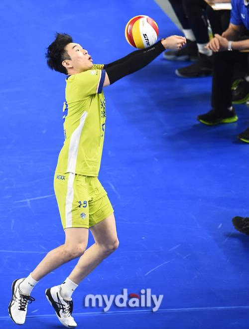 [마이데일리 = 천안 곽경훈 기자] 삼성화재 구자혁이 13일 오후 충청남도 천안시 천안유관순체육관에서 진행된 '2020-2021 도드람 V-리그' 현대캐피탈-삼성화재의 경기에서 수비를 하고 있다.- ⓒ마이데일리(www.mydaily.co.kr). 무단전재&재배포 금지 -