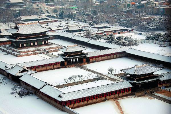 경복궁이 13일 전날 내린 눈으로 하얀 자태를 드러내고 있다. 서울지역은 남서풍이 유입되며 평년보다 기온이 높아져 포근했다. 연합뉴스