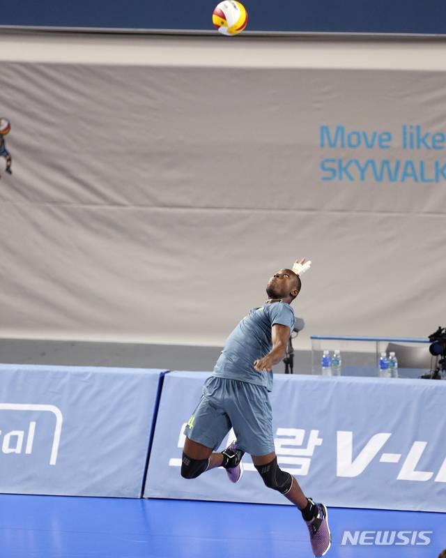 [서울=뉴시스]조수정 기자 = 13일 천안 유관순 체육관에서 진행된 도드람 V리그 현대캐피탈 Vs 삼성화재 경기, 현대캐피탈 다우디가 서브하고 있다. (사진=현대캐피탈 배구단 제공) 2021.01.13. photo@newsis.com