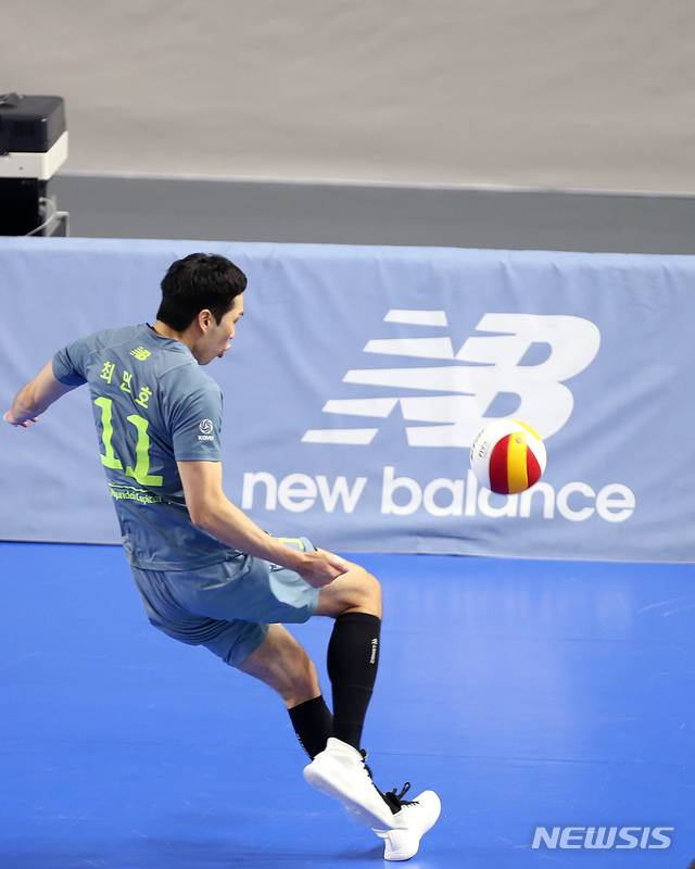 [서울=뉴시스]조수정 기자 = 13일 천안 유관순 체육관에서 진행된 도드람 V리그 현대캐피탈 Vs 삼성화재 경기, 현대캐피탈 최민호가 디그 시도하고 있다. (사진=현대캐피탈 배구단 제공) 2021.01.13. photo@newsis.com