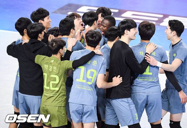 경기종료 후 현대캐피탈 선수들이 승리의 기쁨을 나누고 있다. / soul1014@osen.co.co.kr