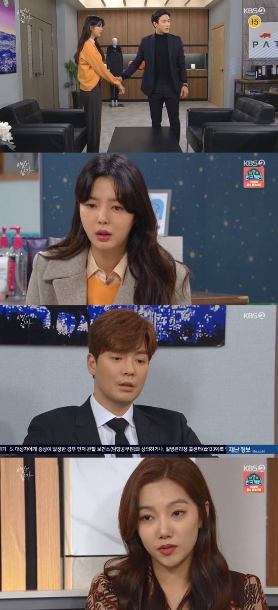 13일 방송된 KBS 2TV '비밀의 남자'에서는 차서준(이시강 분)이 다정한 모습의 한유정(엄현경)과 이태풍(강은탁)을 발견하는 모습이 그려졌다.