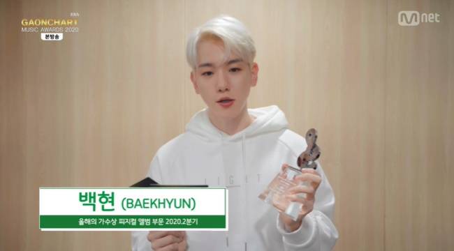 백현은 올해의 가수상 2020년 3월~5월 2분기 수상자로 결정 됐다.
