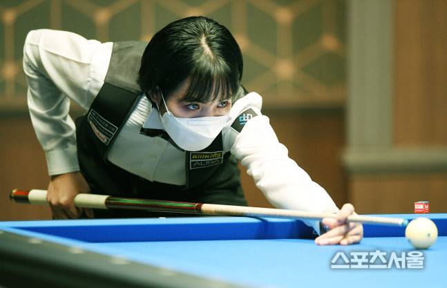 스롱 피아비(Sruong Pheavy)가 13일 경기도 일산 MBC드림센터에서 진행된 ‘‘코리아 당구 그랑프리’ 여자 3쿠션 경기에서 김진아를 맞아 승부를 펼치고있다. 2021.01.13. 김도훈기자 dica@sportsseoul.com