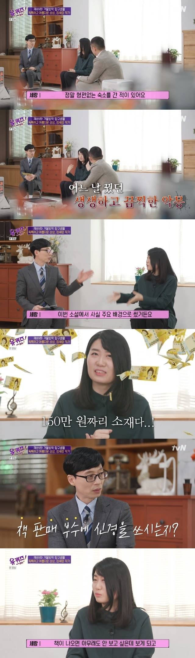 '유퀴즈' 정세랑 작가 "책 판매 부수 신경 쓰여, 서점 책 배치도 확인"