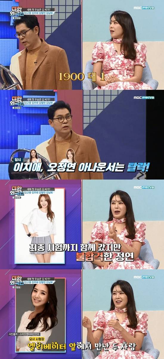 김주희는 "저랑 정연씨는 최종 시험까지 갔다. 최종 3인 중 한명이었다. 이지애씨는 앨리베이터에서 만났는데 '주희 씨 잘되길 응원해요'라고 하더라"라고 설명했다.