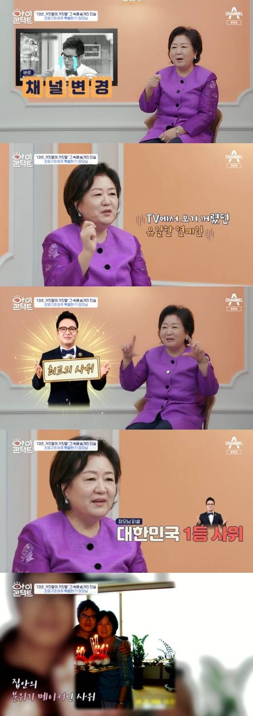 13일 밤 방송된 채널A 예능 프로그램 ‘아이콘택트’에서는 방송인 조영구가 장모와 눈맞춤을 하는 모습이 담겼다.