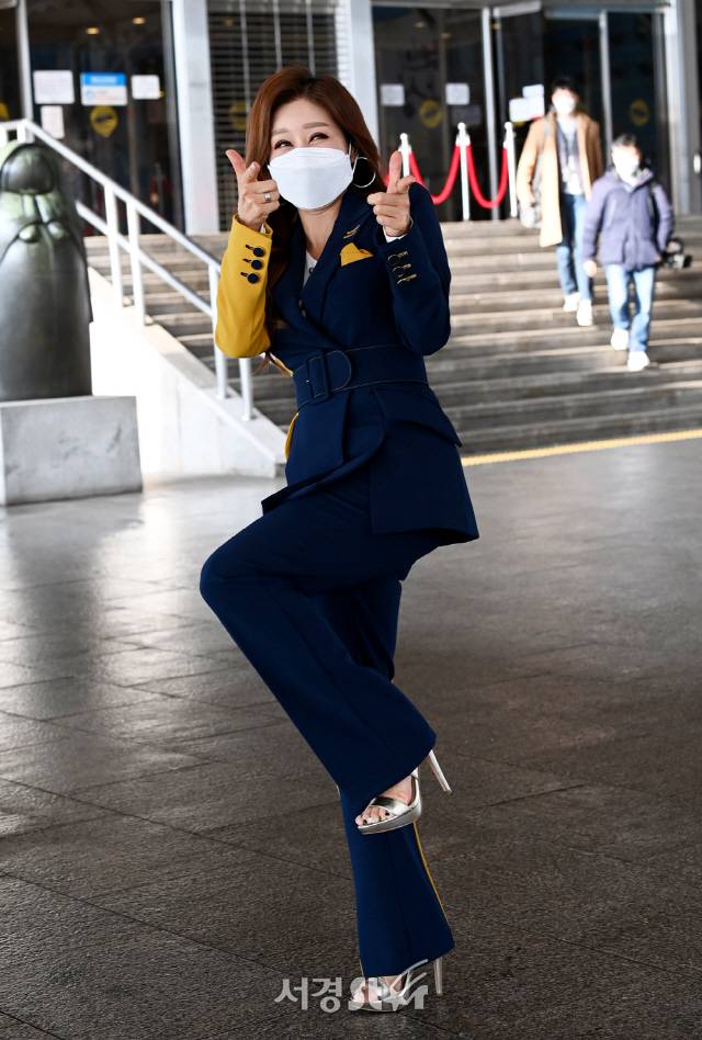 [서울경제] 가수 김혜연이 13일 서울 여의도 KBS에서 열린 방송 녹화를 마치고 나서고 있다.