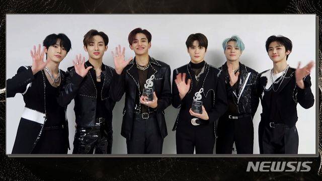 [서울=뉴시스]조수정 기자 = 그룹 NCT가 13일 열린 제10회 가온차트 뮤직어워즈에서 올해의 탑 키트셀러상, 월드 한류스타상 등 2관왕을 차지했다. (사진=가온차트뮤직어워즈 제공) 2021.01.13. photo@newsis.com