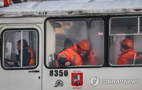 epa08934970 Workers sit inside a bus at the site of construction of the Moscow State University's Vorobyovy Gory Innovative Scientific and Technological Center in Moscow, Russia, 13 January 2021. The Innovative Scientific and Technological Center will house nine clusters (including seven industry-specific) in areas biomedicine and pharmaceuticals, nanotechnology, information technology and mathematical modeling, robotics, space research, geonomy and ecology, humanities, sports technology and artificial intelligence. Construction is planned to be completed in 2025. EPA/YURI KOCHETKOV