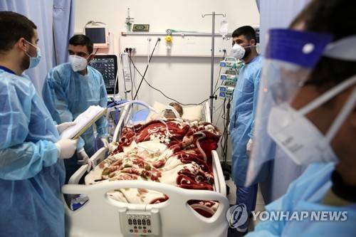epa08935017 Palestinian medical workers check a patient at the COVID-19 section of Dura hospital in the West Bank city of Dura near Hebron, 13 January 2021. Palestinian health officials announced the first shipment of the AstraZeneca COVID-19 vaccine will arrive by end of February, while Prime Minister Mohammad Ishtayeh said the Ministry of Health signed with three other companied to provide vaccine which will arrive within the next two months. EPA/ABED AL HASHLAMOUN