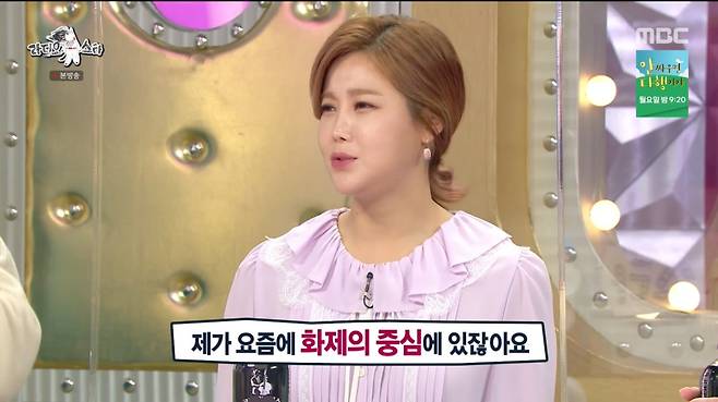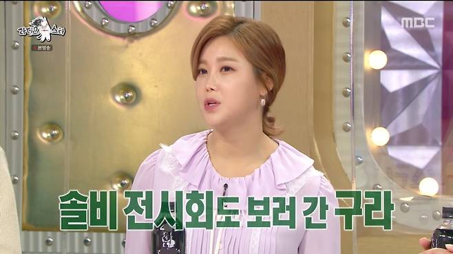 이날 솔비는 "'라스'는 내가 힘을 받고 싶을 때 불러준다"면서 고마움을 드러냈다. 최근 유명 화가 제프 쿤스의 작품과 유사한 케이크를 만들어 논란이 됐던 솔비는 "제가 요즘에 화제의 중심에 있다"고 덤덤하게 밝혔다.