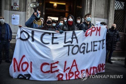 epa08935027 Students of the Manzoni high school protest against distance learning (Didattica a Distanza, DAD) amid a second wave of the coronavirus disease (COVID-19) pandemic, in Milan, northern Italy, 13 January 2021. High schools in Lombardy region are expected to reopen on 25 January. The Italian government decided to delay the original return date of 07 January due to a rise in COVID-19 infections in the country, however different measures are applied to different regions according to their infection levels. EPA/MATTEO CORNER