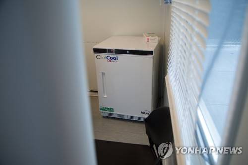 epa08935029 A view of a refrigerator system containing the vaccine can be seen inside one of the vaccination units installed at the Brooklyn Army Terminal in Brooklyn, New York, USA, 12 January 2021 (issued 13 January 2021). Approximately, 2000 people a day are expected to get vaccinated in this site, potentially more, as the vaccination capacity increases alongside workflows. EPA/ALBA VIGARAY